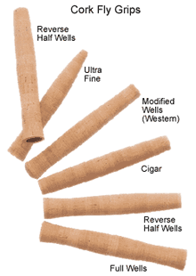 Choosing the right style grip for your fly rod contributes to the overall aesthetics of the look you are after. But more than that the proper size and style of grip that fits your hand means the difference of all day comfortable and accurate casting and a fly rod that wears you out. In creating your custom rod we will take measurements of your casting hand so that the grip size is custom to you. As I turn my own grips from premium Portuguese cork I will make a grip that fits you and looks good. There are an assortment of grip styles and materials available. I can help you decide the right one for you. Learn more about the importance of the right grip on my blog here