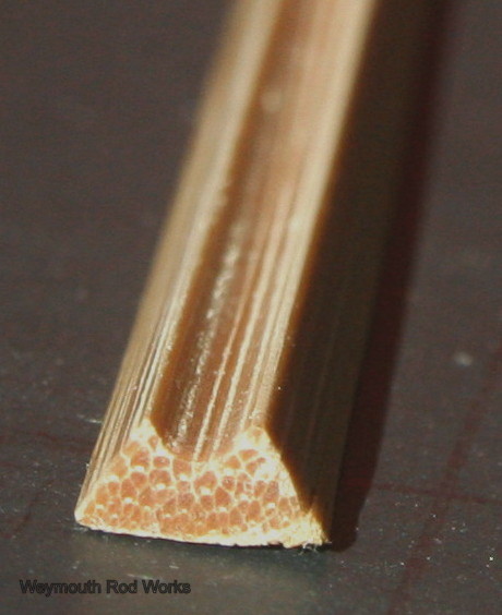 Hollow building a bamboo fly rod means exactly what you’d expect: Material from the inside of a bamboo rod is removed leaving open spaces within. Tests have proven that the strength of bamboo comes from the dense power fibers located in the outer circumference of the culm. The purpose of removing the inner pith material is to make the rod lighter in weight while making it rebound and recover quicker with less bounce and excess vibration. Hollowing involves removing the softer, inner pith of a beveled and shaped bamboo strip.