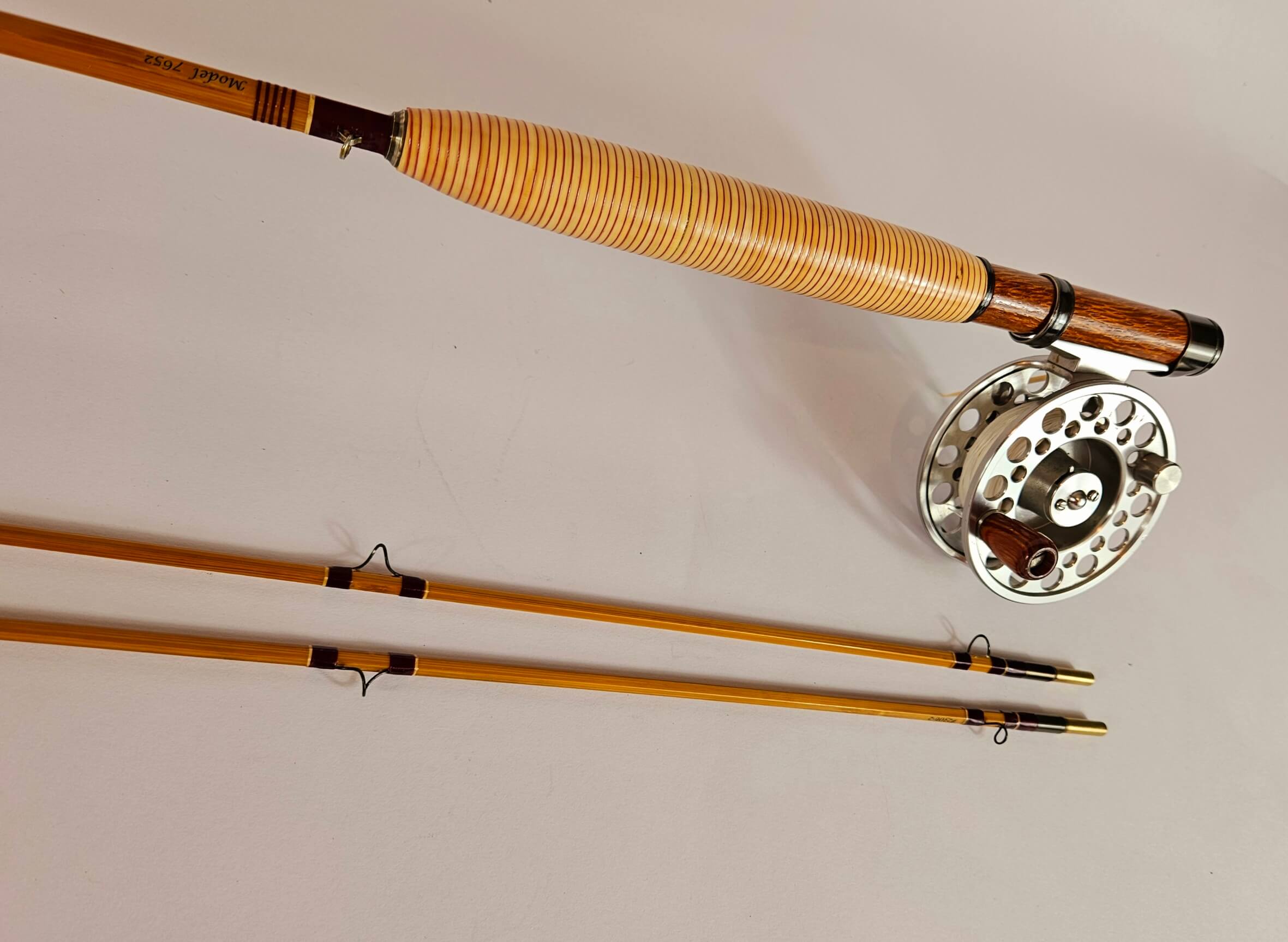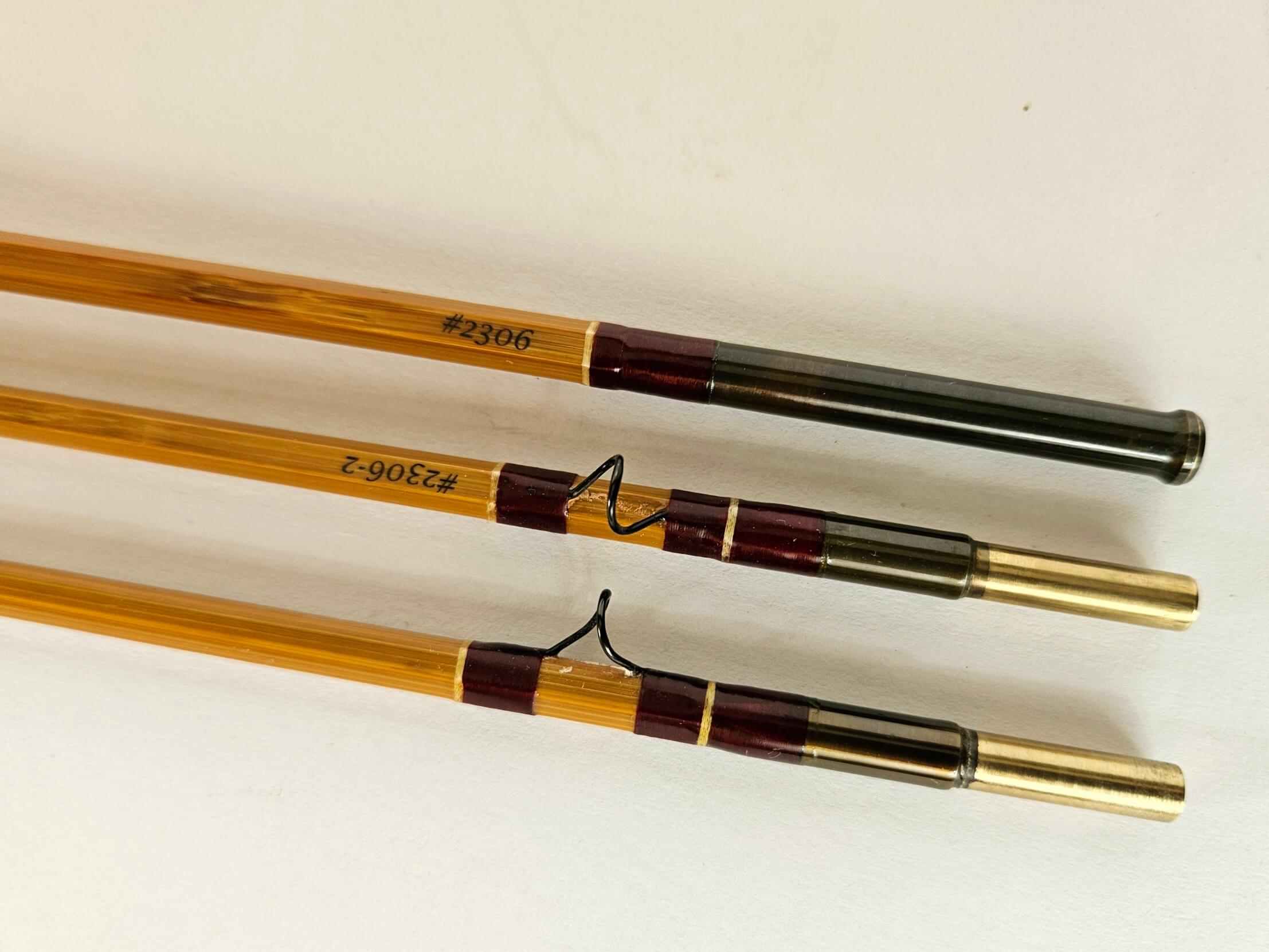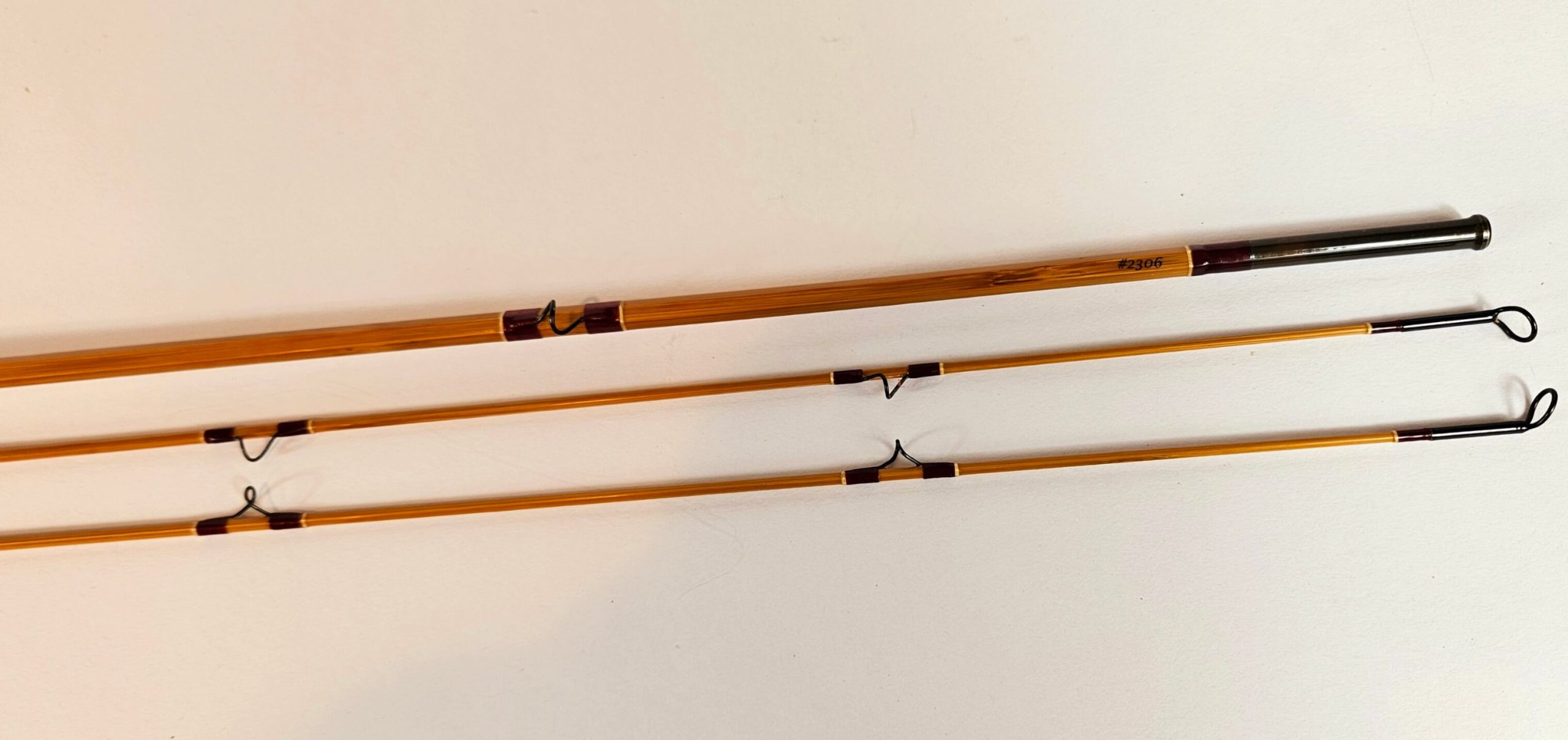 A new Weymouth Rod Works signature model 765 serial #2306. This 2-pc, 2-tip rod is 7’ 6″, and built for 5wt line. The finished rod weighs 4.25 ounces. Built in a hex configuration, the model 765 is a seven-foot six-inch rod designed with a fast, progressive action that commands a #5wt line with a fluid authority. This rod model is a lot of rod packed into a short body; the 765 excels at accurate short flicks as well as laying out a lot of line when needed.