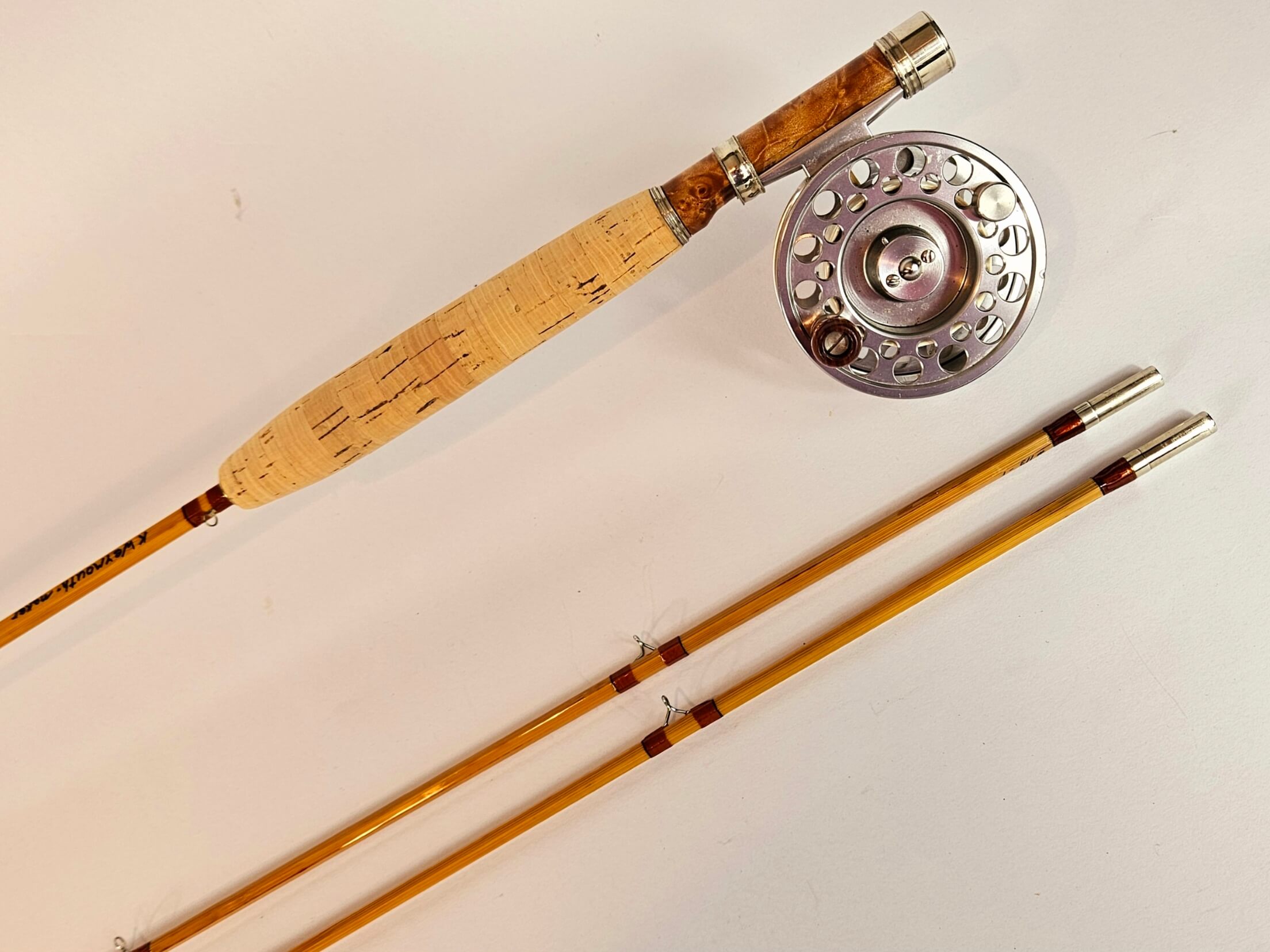An iconic Paul Young taper, the Para 15 is an 8’ 0’ 2pc with 2 tips. Comes with one dry fly tip and a heavier wet fly tip. The finished rod weighs 4.6 ounces and fishes well with a 6wt line. Serial #113. Built in a hex configuration, the Para 15 is a solid built design with medium full-flexing parabolic action and is capable of shooting an abundance of line if desired. With its’ parabolic butt this rod is a great roll caster. This rod has been lightly fished and is in excellent condition.